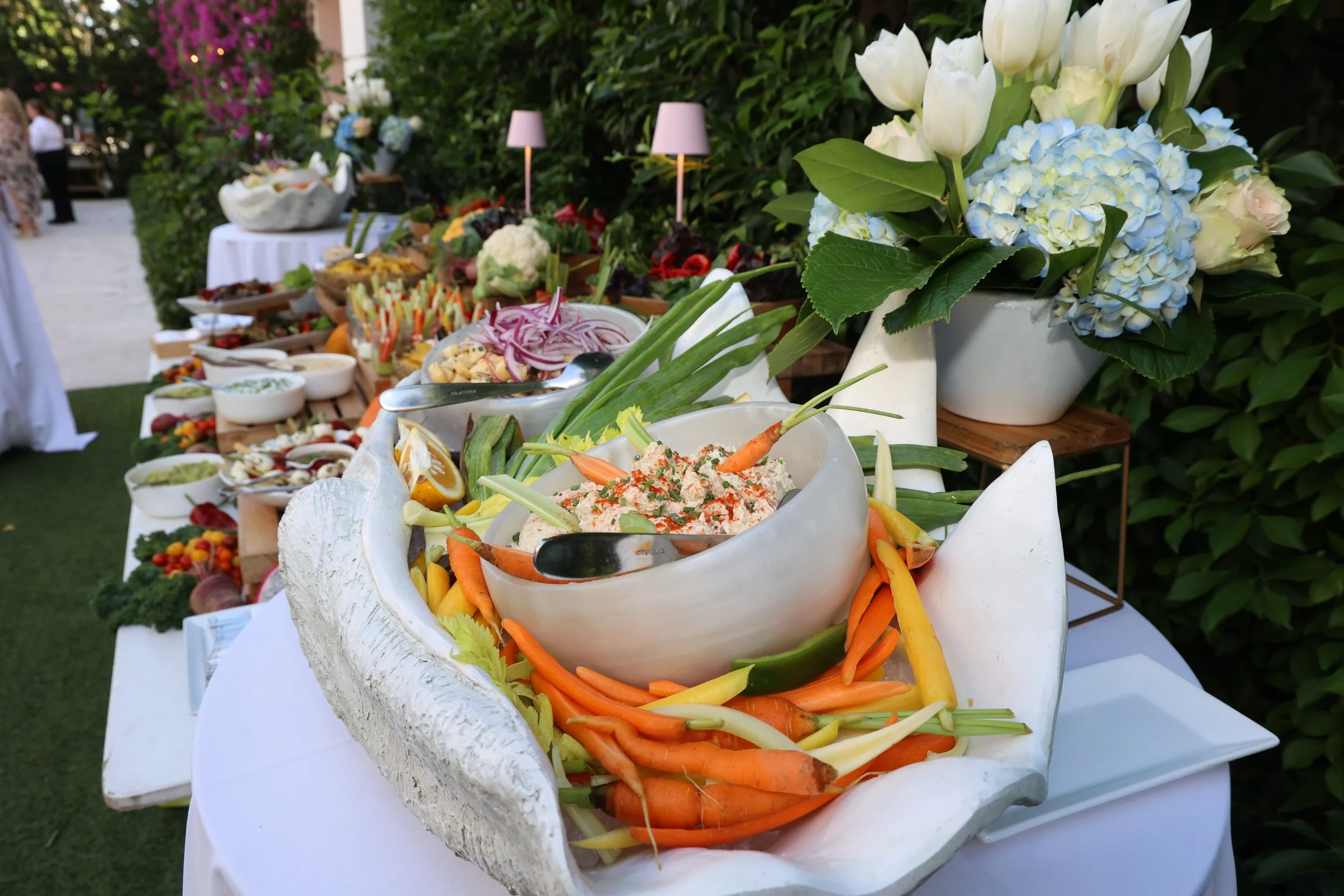 Guests enjoyed specialty cocktails upon arrival including a rosé wine bar sponsored by Out East Wines. An elevated menu of tapas and passed hors d'oeuvres were prepared by The Colony Hotel Palm Beach Executive Chef, acclaimed Tom Whitaker, as well as a stunning display of sustainable farm-to-table fresh fruit and vegetables locally sourced with accompanied infamous Swifty’s spreads and tapenades.